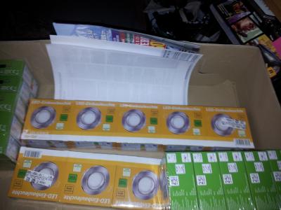 Da wir nun in den drei mittleren Räumen die helle Holzdecke behalten, habe ich mich bei Pollin mit LED Spots eingedeckt
