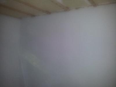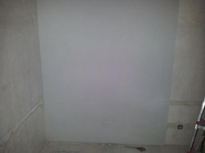 Mein Kollege Uwe hat die Große Fläche verputzt und soweit gerade gemacht, dass wir nun Tapete kleben können und dann unsere Geräte vorstellen können. Danke Uwe.